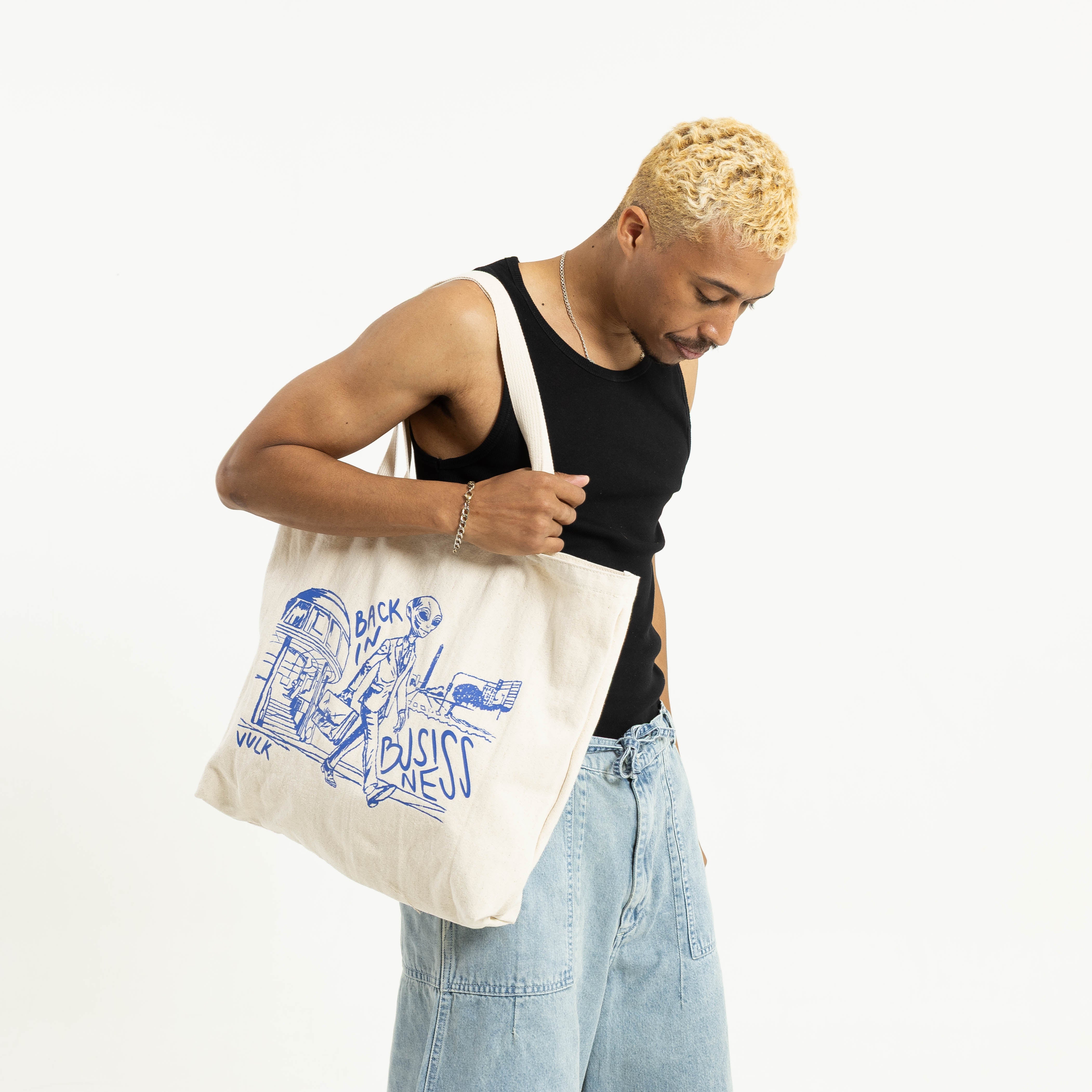 Detalles: Tote bag de lona resistente y correas de algodón. Bolsillo interno y estampa en frente. Medidas: 45 cm x 50 cm