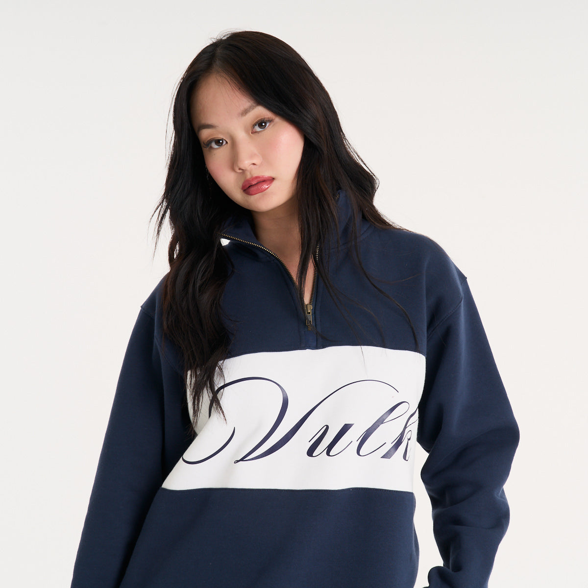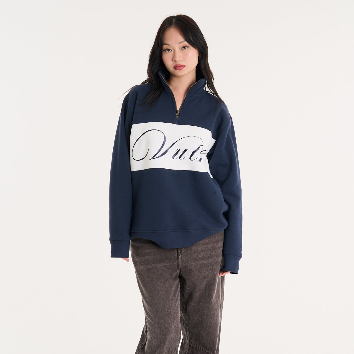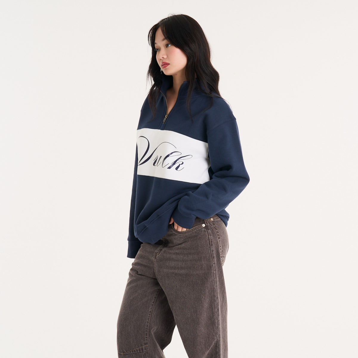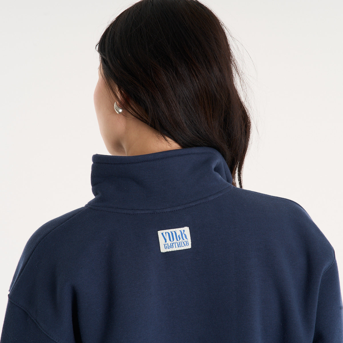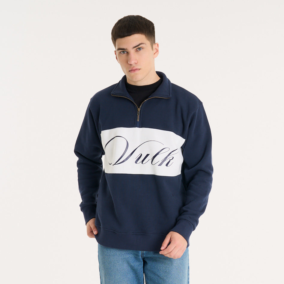 Buzo de frisa con medio cierre metálico en el cuello y un recorte frontal a contratono que le mete identidad sin gritar. El calce relax te deja moverte sin pensar en lo que tenés puesto — lo tirás encima de una remera y ya tenés look armado. La mezcla de algodón y poliéster le da ese abrigo cómodo que aguanta el día entero, desde la mañana en la calle hasta la noche en el bar. Funciona solo, funciona debajo de una campera. Half zip que resuelve sin complicar.