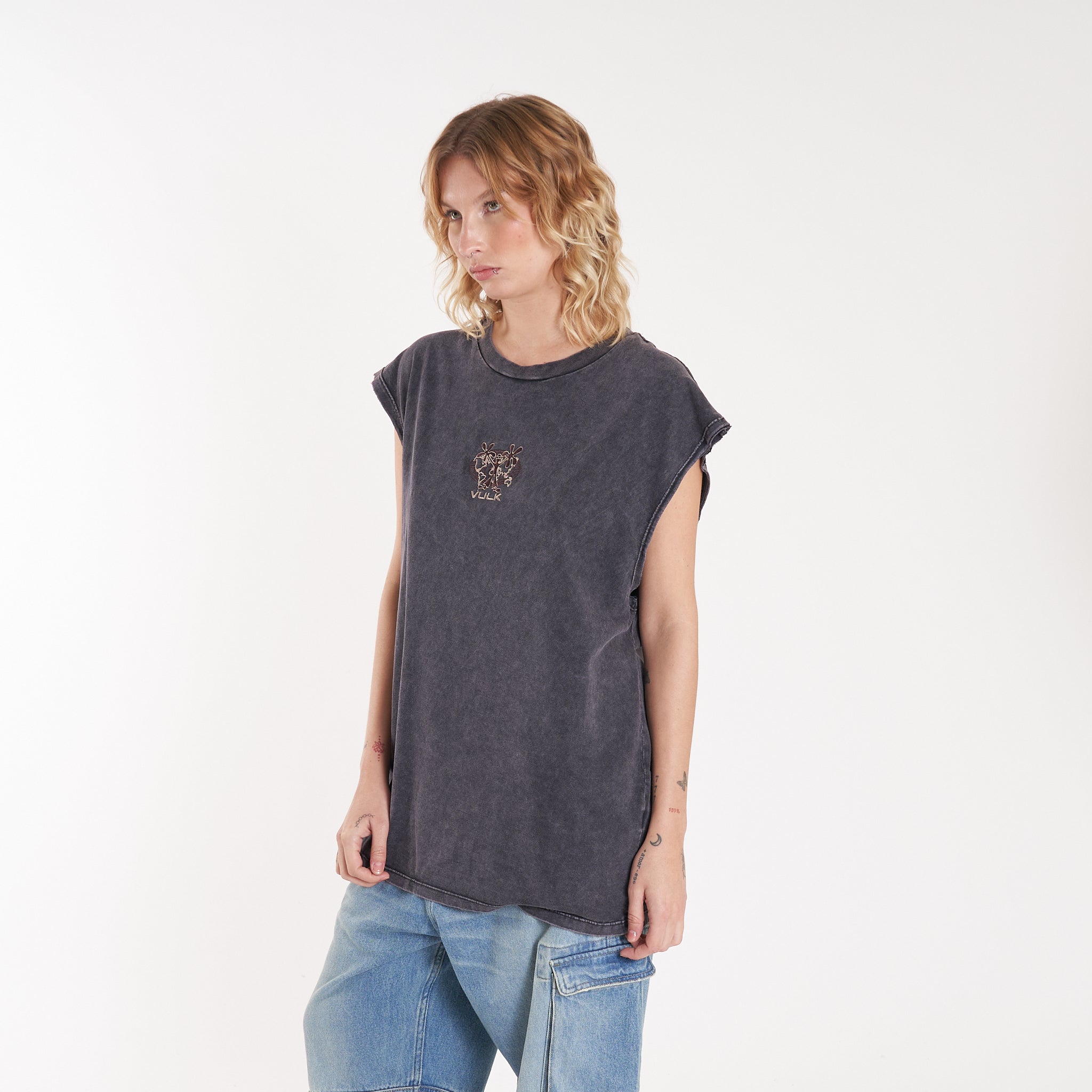 Detalles: Tejido con proceso de lavado y gastado. Ruedos con terminación artesanal al corte y bordado en delantero