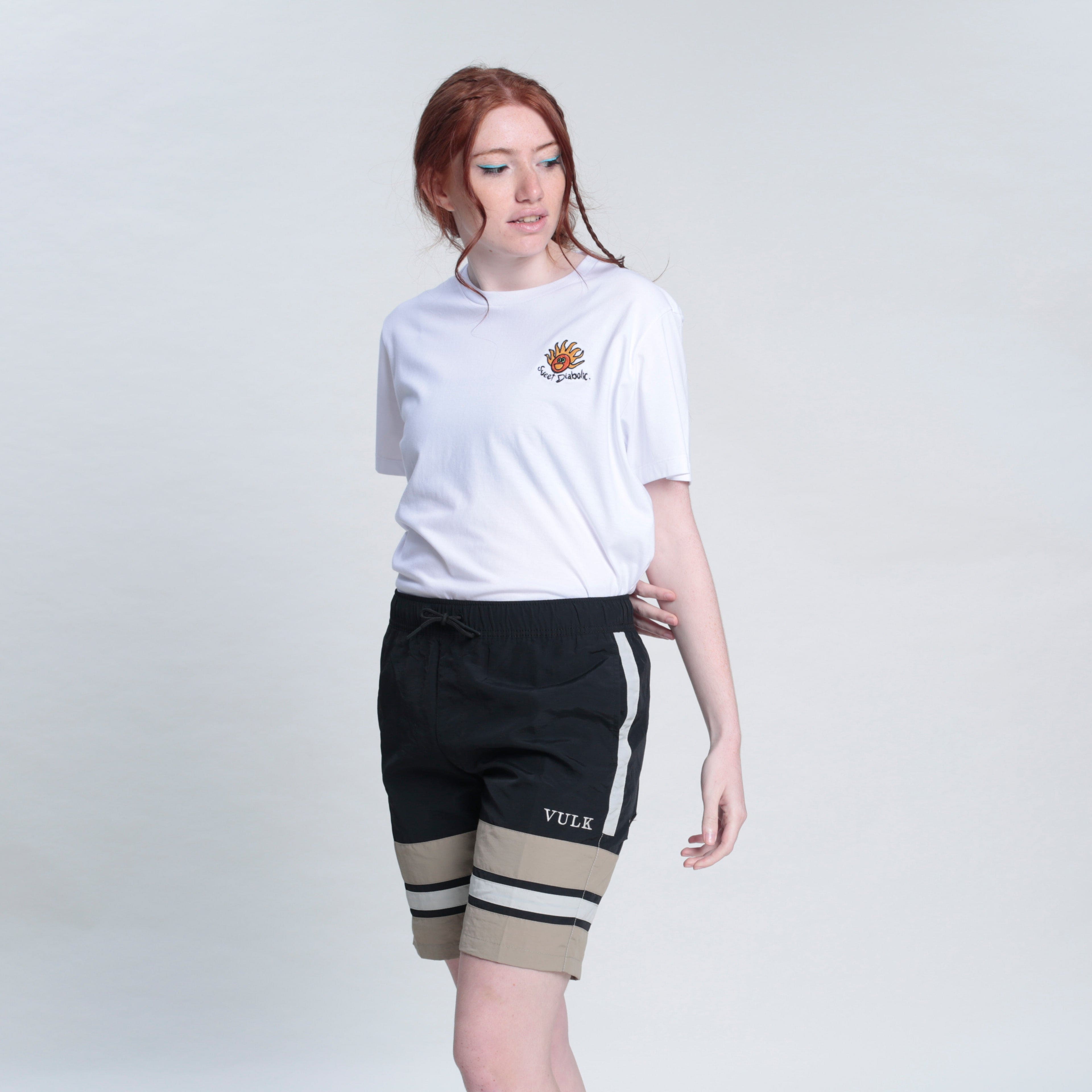 Short de baño con recortes y apliques. Bolsillo laterales con interior de mesh y bolsillo trasero ojal con velcro.